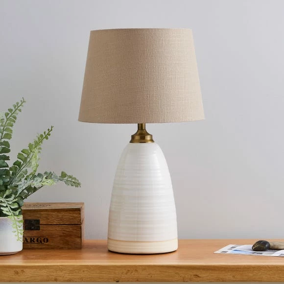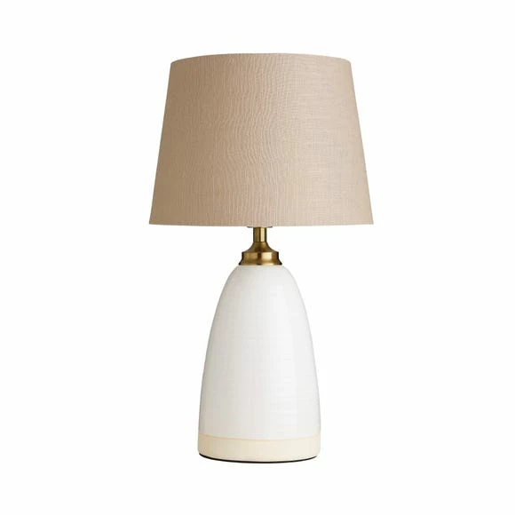 Perfect for adding a classic modern touch to your home, our Churchgate Harby Ceramic Table Lamp is crafted with a white ceramic glazed base, paired with a faux linen natural colour shade. Complete with a Metal Chrome Lamp holder and a 1.8m Taupe twisted cable. Matching family items available to help coordinate your home décor.