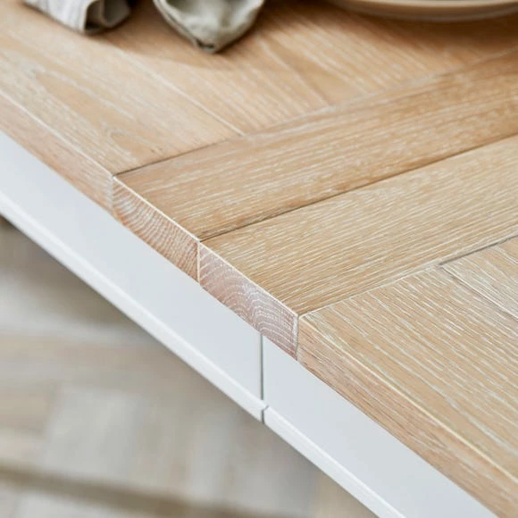 Whether you’re enjoying a meal with your family or entertaining guests, the Churchgate Ivory Rectangular Dining Table is the perfect choice for a versatile piece that works with you and your needs. As practical as it is stylish, the dining table is designed with a classic look, featuring a white washed oak top and white painted tapered acacia frame and legs. This extendable table uses a pull out mechanism and extends out to accommodate up to 10 people, perfect for larger families or parties.