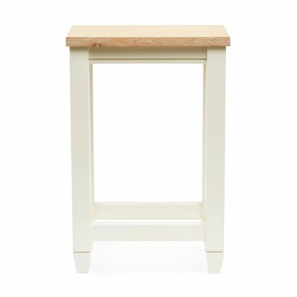 Finish your kitchen off on a high with this kitchen island and stool set. If your taste is traditional, you’ll love the classic look of the Churchgate line. In a warm ivory and wood design, the two-tone finish offers a touch of country cottage charm. The Churchgate Ivory Kitchen Island is crafted from solid acacia frames and legs and finished with a stunning, hand glazed MDF veneered oak top. Featuring deep shelves on one side, this kitchen island offers plenty of storage space for sauce pans, woks, frying pans, and other kitchen equipment within easy reach. Paired with the stunning Churchgate Ivory Island Bar Stool, these compact stools are ideal for a breakfast bar and is crafted from solid acacia frame and legs finished in a gorgeous white painted finish and MDF veneered oak tops.